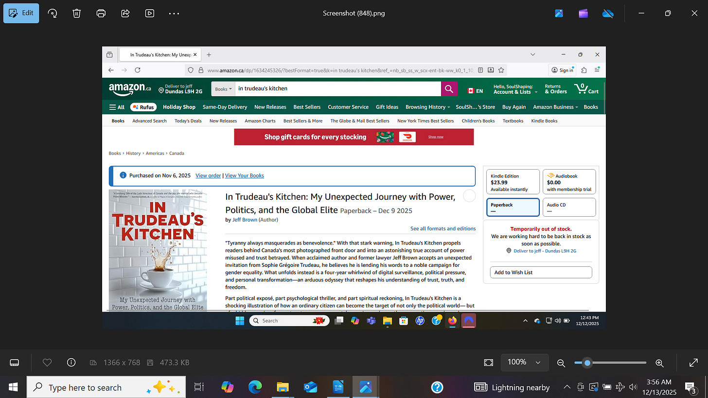 Dear Friend: I’ve reached a particularly challenging stage on the Devil’s Playground with respect to my political situation. My psyche is still strong, but my body is tired. Almost five years ago to the day (December 12, 2020) that I made my second effort to personally disconnect from Sophie Gregoire Trudeau, things have intensified, particularly around individuals blocking access to the book that tells the story, In Trudeau's Kitchen. As it is, I cannot resolve all of this on my own. I have certainly tried. I am not particularly good at asking for help, but I am asking for yours.