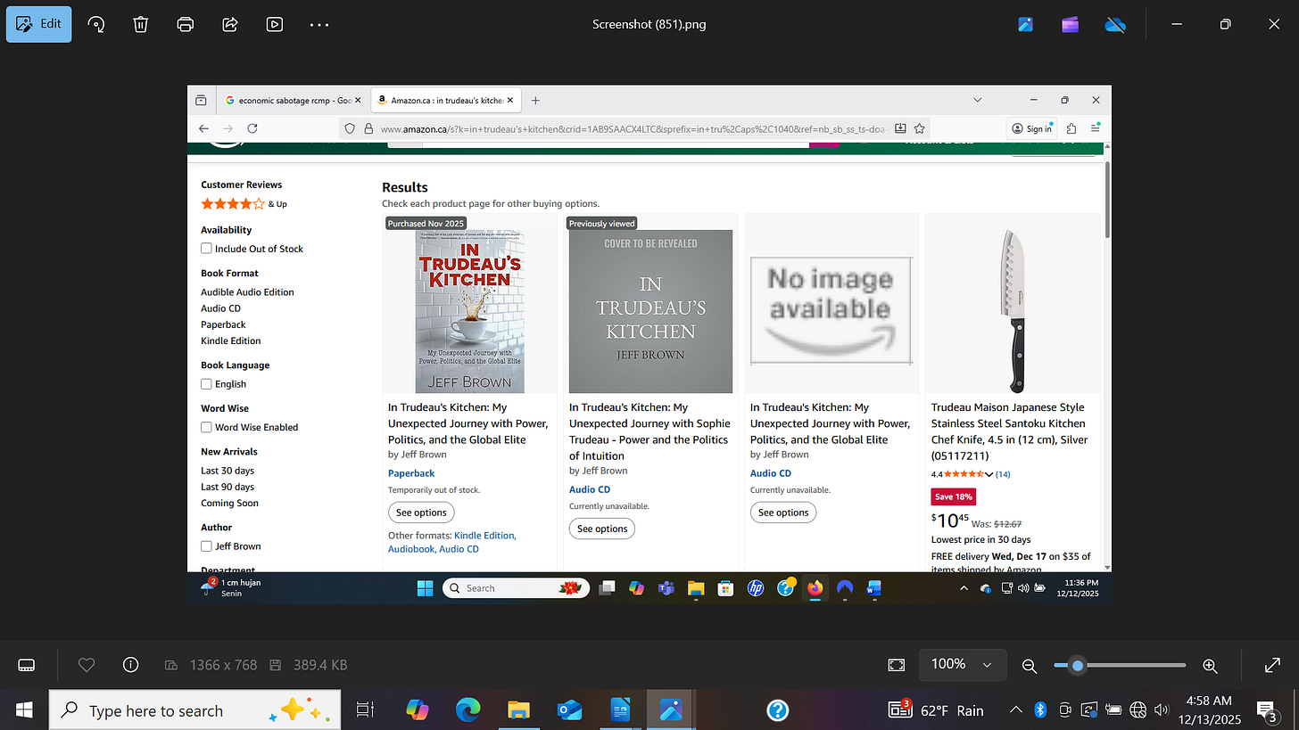 It is clear that someone is determined to get into these systems and sabotage the capacity for this particular book to reach the Canadian public. I have little doubt that this is being done to protect the current Liberal administration (and various exposed individuals and corporate entities) from the possible fallout from this story. If there was no potential fallout, why bother playing all these games?
