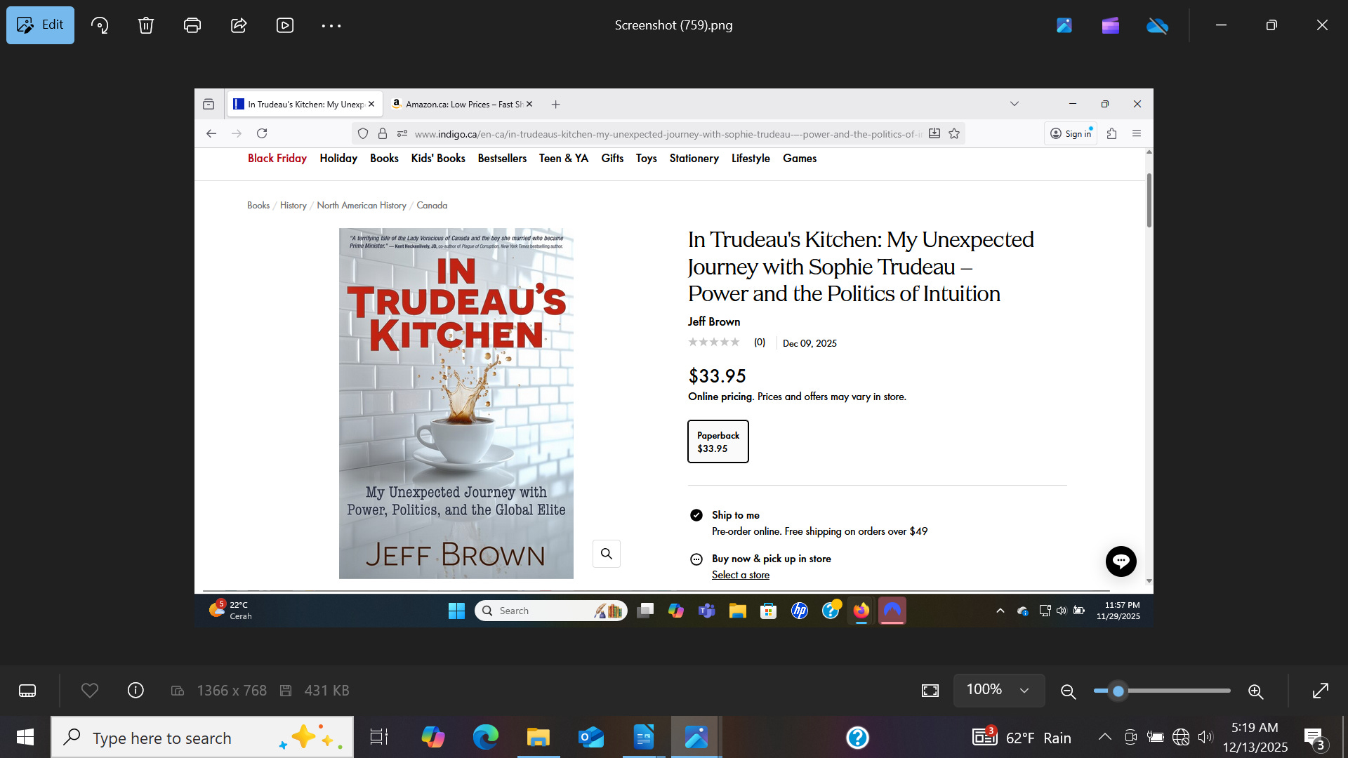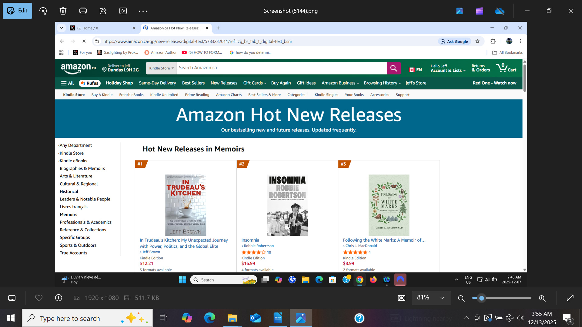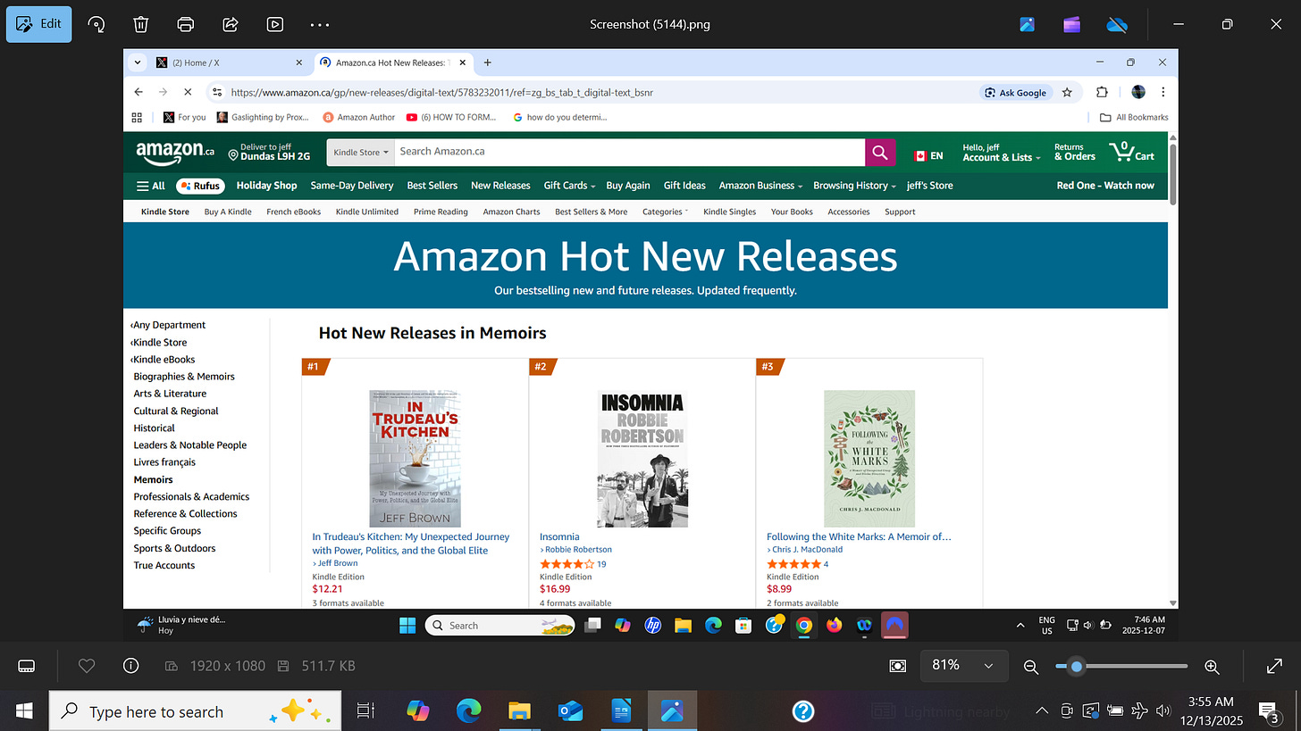 The book technically launched last week, and quickly rose to #1 on Amazon Kindle (Canada) in the Memoir category for new releases.